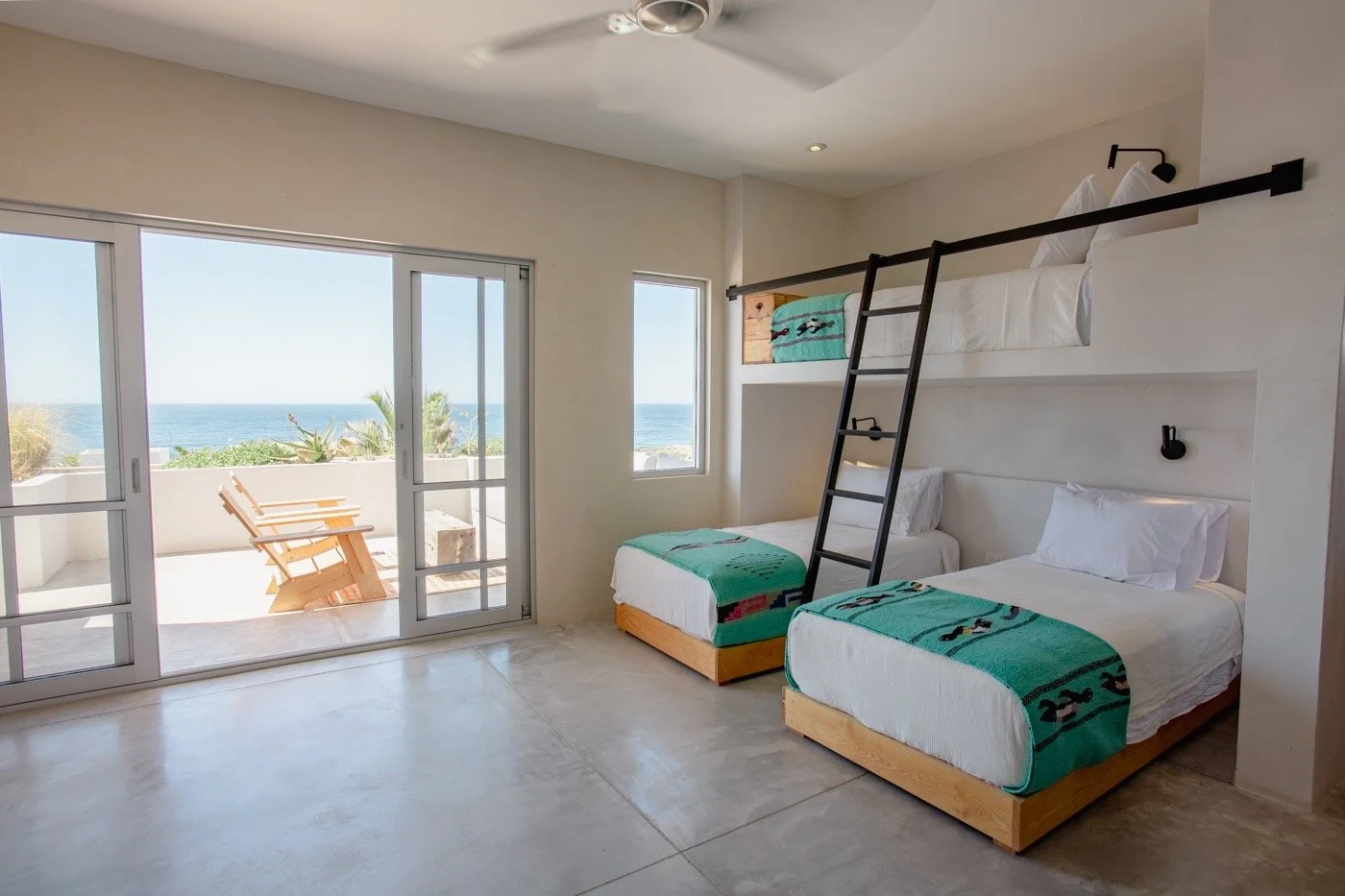 Rooms feature sweeping views of the Pacific Ocean, deluxe linens & towels, locally sourced products, and reading lights (yay!) The room arrangements at Topia are fun and spacious, and several rooms are perfect for friends (+ new friends!) All rooms have private bathrooms & comfortable beds.