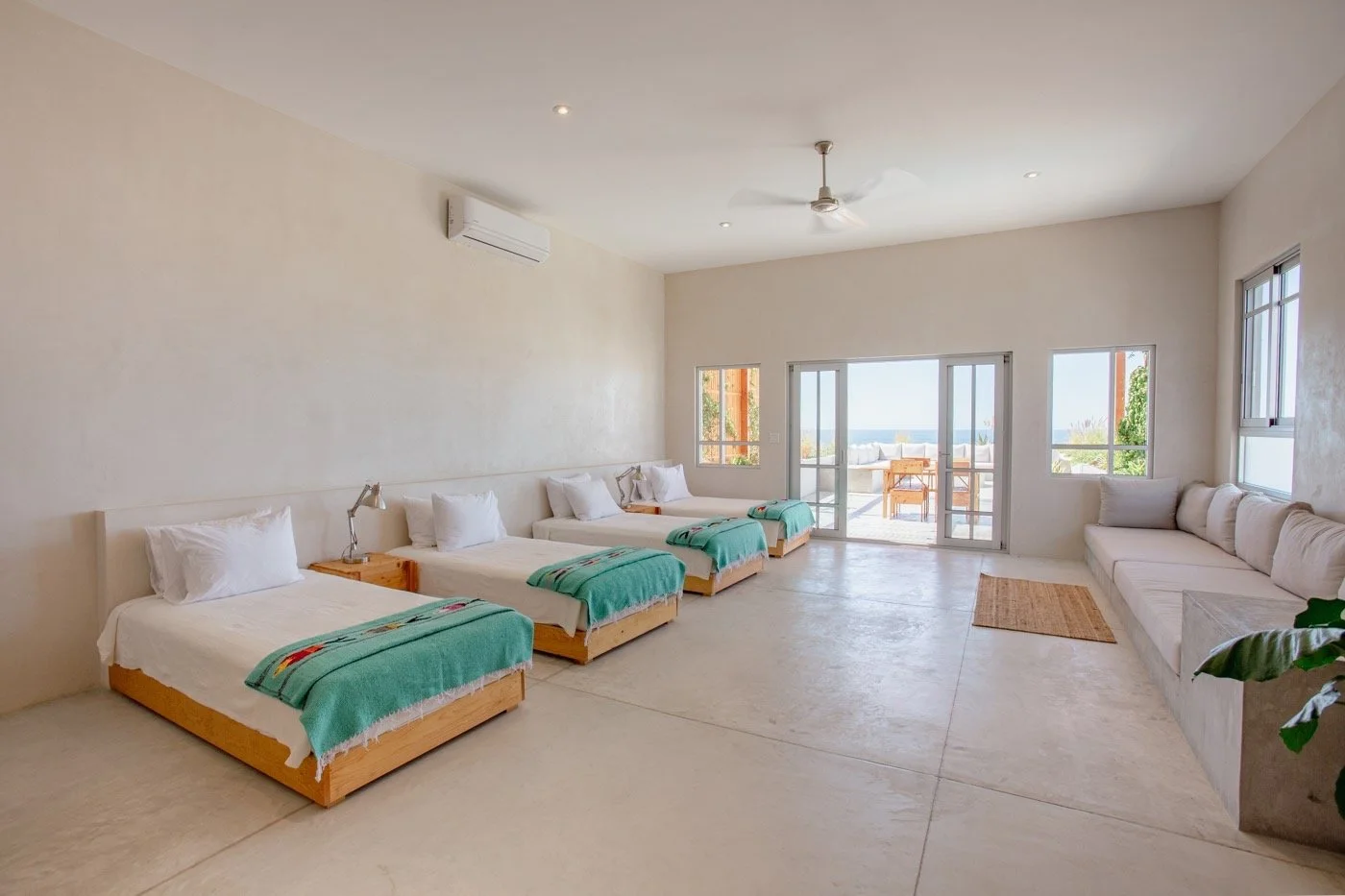 Surf Suites (two available, 3 twin beds + 1 king bed in each! Includes private patio with panoramic ocean views): Twin bed: $2400 per person ($500 non-refundable deposit, 2 $950 payments due June 1st, 2026 and November 1st, 2026)